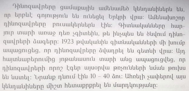 - Տեքստի վերջին նախադասությունը գրեք ապառնի ժամանակով: Ահռելի չափերով այս կենդանիները միշտ կհետաքրքր են մարդկությանը: