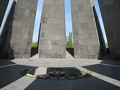 Рядом со стелой находится усечённый конус из двенадцати больших каменных плит. В его центре, на глубине 1,5 метров горит вечный огонь. Существует расхожее мнение, что плиты символизируют собой 12 провинций, в которых в основном происходила резня. Или же с количеством вилайетов, которые согласно Севрскому договору должны были быть переданы Армении, хотя этих вилайетов, на самом деле, было меньше. Иногда число 12 связывают с количеством апостолов. Однако, Сашур Калашян, один из архитекторов комплекса, объясняет, выбор числа 12 следующим образом: В процессе проектирования мы пробовали комбинации из 4, 6, 8, 12 и 16. Перед нами стояла эстетическая задача и только.