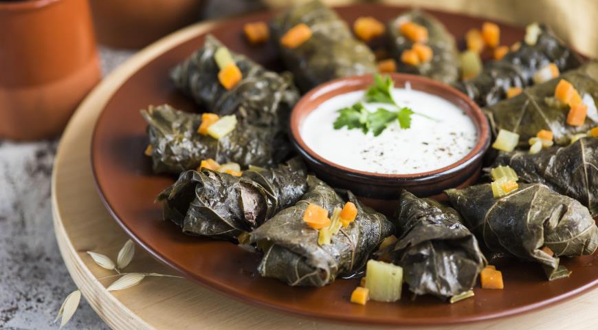 1Листья винограда варить в чуть подсоленной воде минут 5. Мясо пропустить через мясорубку.