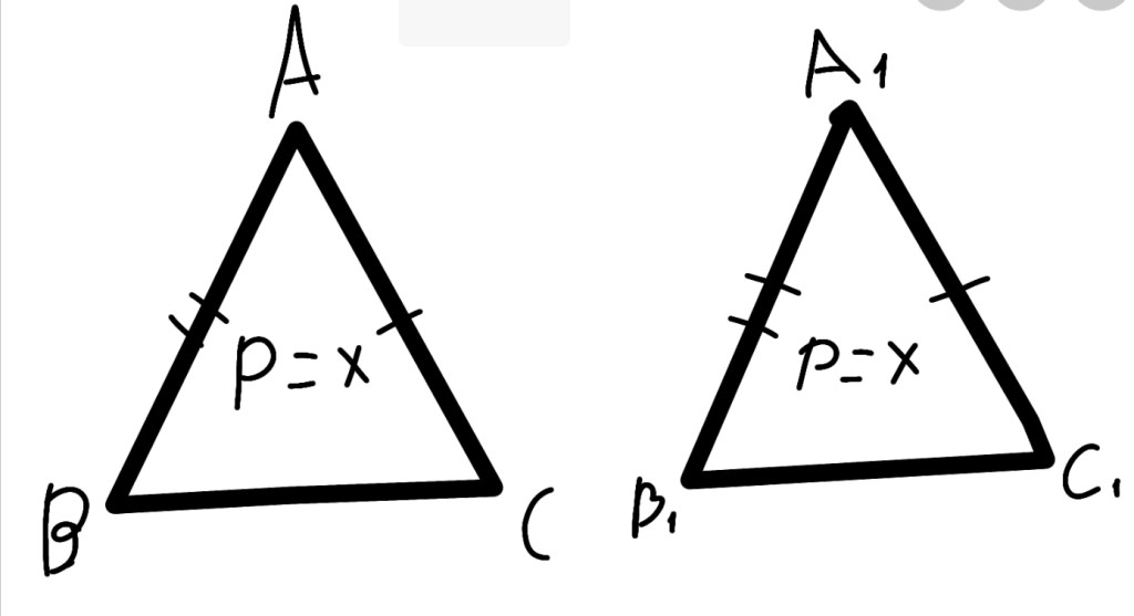 6)Հավասար պարագծեր ունեցող ABC և A1B1C1 եռանկյուններում AB=A1B1 AC=A1C1 : Ապացուցեք, որ ΔABC = ΔA1B1C1 :