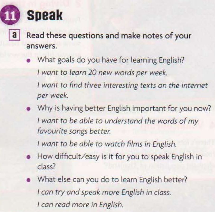 I want to fing three interesting texts on the internet per week. I want to be able to understand the words of my favorite songs better. I can speak in the class fluently. I can read more in English.
