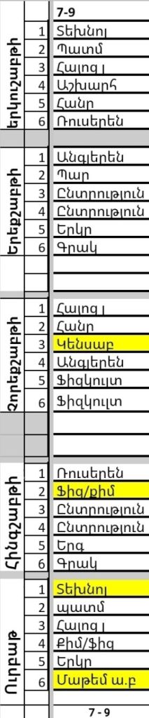 Լրացուցիչ հաճախում դպրոցում-չեմ հաճախում