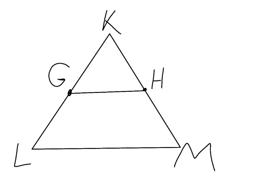 2)KLM եռանկյան մեջ տարված է GH միջին գիծը, ընդ որում՝ G∈KL, H∈KM: GH միջին գծի վերաբերյալ, ո՞ր պնդումն է ճիշտ: Ընտրիր ճիշտ պատասխանը: