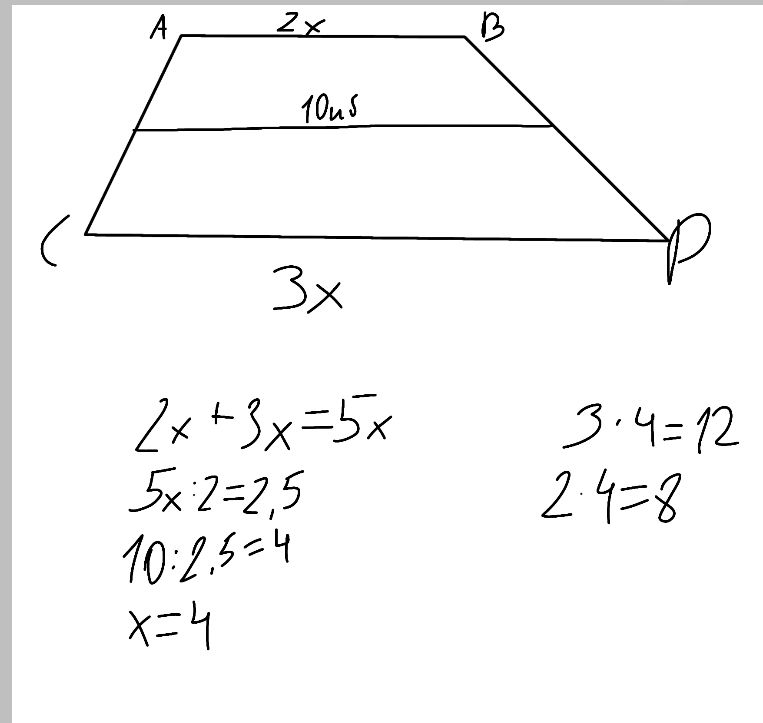 3)Սեղանի հիմքերը հարաբերում են, ինչպես 2:3, իսկ միջին գիծը 10սմ է։ Գտեք սեղանի հիմքերը։