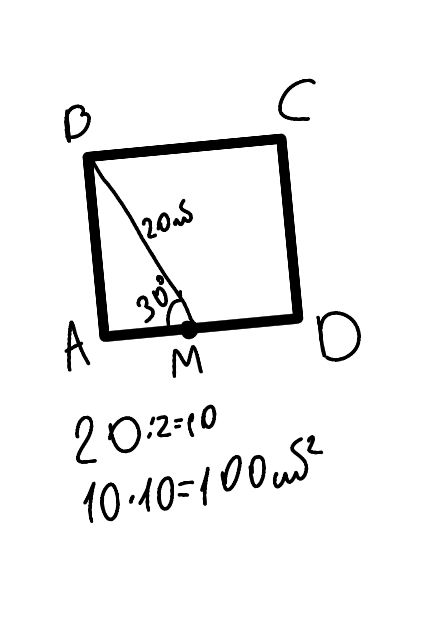 2)Տրված է ABCD քառակուսին։ AD ճառագայթի վրա վերցված է M կետն այնպես, որ <AMB=30o, և BM=20 սմ։ Գտեք այդ քառակուսու մակերեսը։