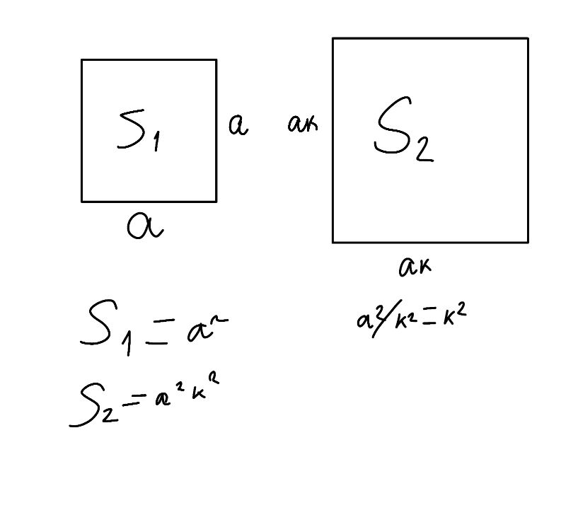 1)Մի քառակուսու կողմը k անգամ մեծ է մյուս քառակուսու կողմից: Գտե՛ք այդ քառակուսիների մակերեսների հարաբերությունը: